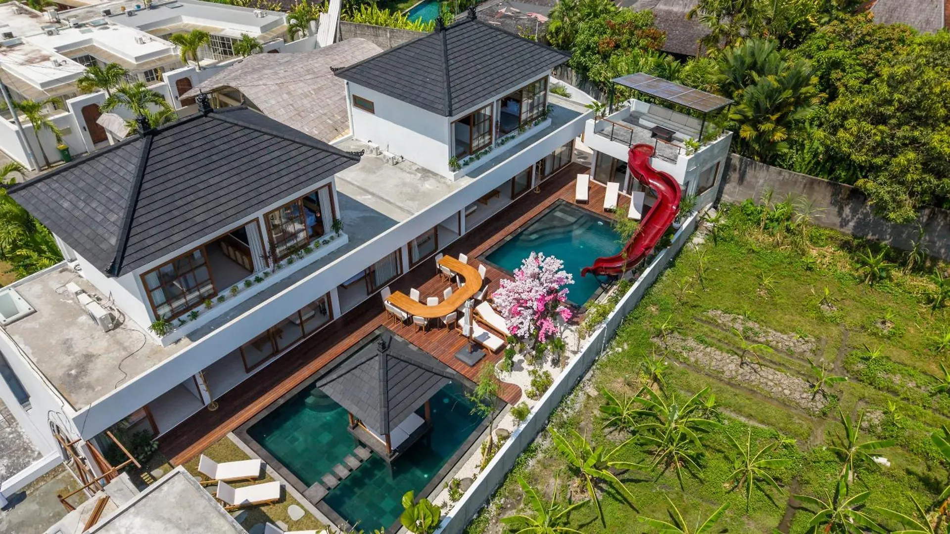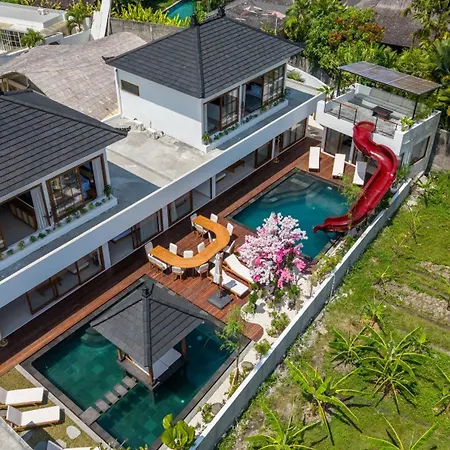 Вилла 10Br Japanese Style, 2 Pools & Slide In Canggu Kerobokan (Bali) располагается примерно в 4 км от Пляжа Петитенгет и приглашает гостей на террасу.